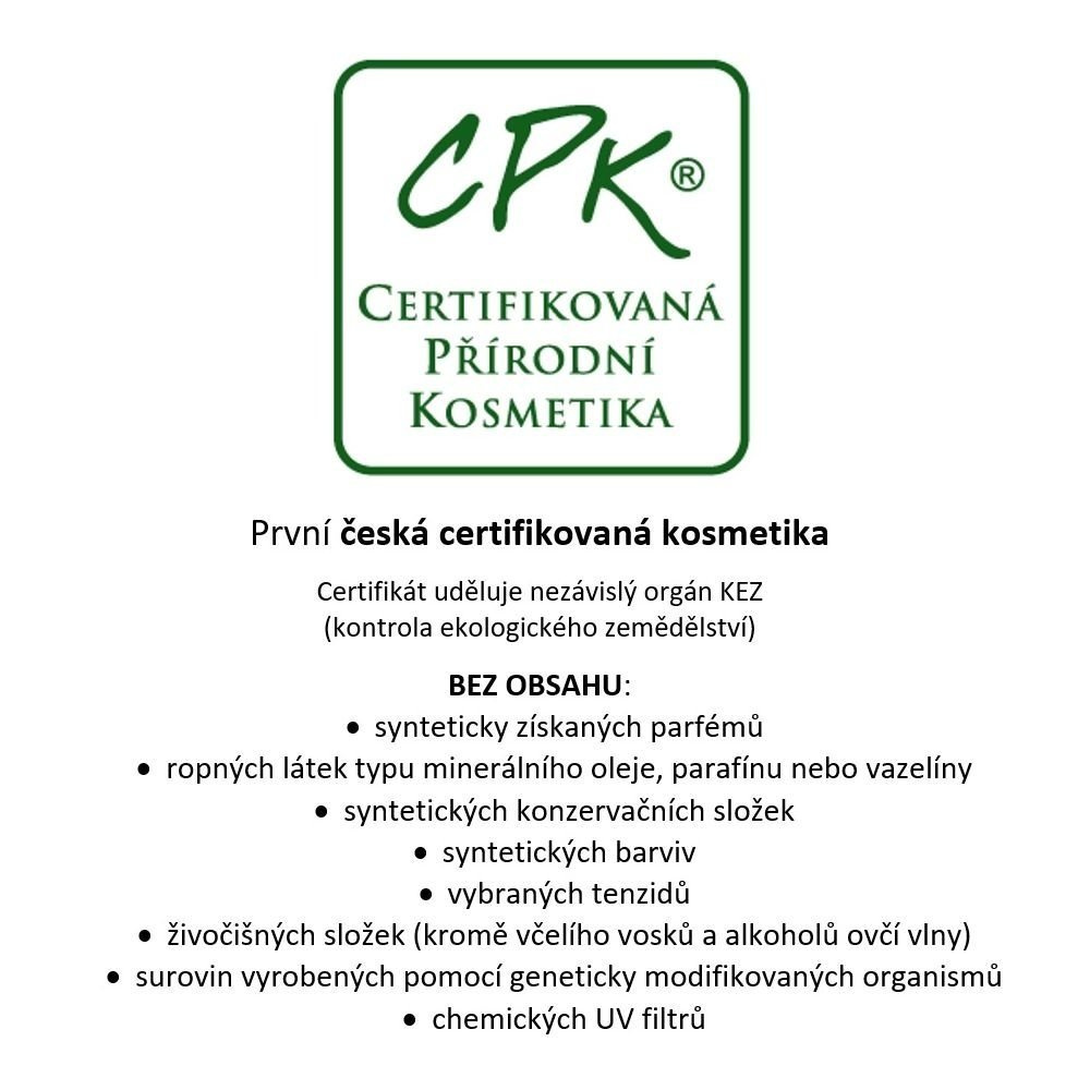 Aqua (demineralizovaná voda); Cocamidopropyl Betaine (jemný tenzid, pěnidlo); Decyl Glucoside (přírodní tenzid na bázi rostlinného oleje a glukózy); Polyglyceryl-4 Caprylate (solubilizátor na bázi glycerinu a rostlinného oleje); Sodium Lauroyl Glutamate (přírodní tenzid); Sodium Lauryl Glucose Carboxylate (přírodní tenzid); Lauryl Glucoside (přírodní tenzid na bázi rostlinného oleje a glukózy); Sucrose Cocoate (přírodní emulgátor ); Betaine (betain, hydratační složka); Panthenol (D-Panthenol, hydratační složka); Sodium Benzoate (benzoan sodný, konzervant pro certifikované přírodní a bio přípravky); Potassium Sorbate (sorban draselný, konzervant pro certifikované přírodní a bio přípravky); Glycerin (hydratační látka); Diglycerin (glycerylglycerin, rozpouštědlo); PCA Glyceryl Oleate (přírodní derivát aminokyseliny, kyseliny olejové a glycerinu); Zinc Lactate (mléčnan zinečnatý, antimikrobiální a zklidňující složka); Anthemis Nobilis Flower Oil (éterický olej z květů heřmánku římského); Citrus Limon Peel Oil (éterický olej citronový); Citrus Nobilis Oil (éterický olej mandarinkový); Mel Extract (extrakt ze včelího medu); Citric Acid (kyselina citronová, regulátor pH); Lactic Acid (kyselina mléčná, regulátor pH); Limonene*. * - z přírodních éterických olejů.